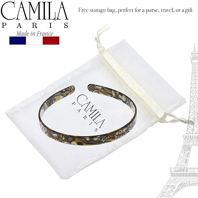 Camila Paris CP2005 French Headband for Women, Handmade Onyx, Strong Hold Grip Women's Hair Band, Ligth and Very Flexible, No Slip and Durable Styling Girls Hair Accessories, Made in France