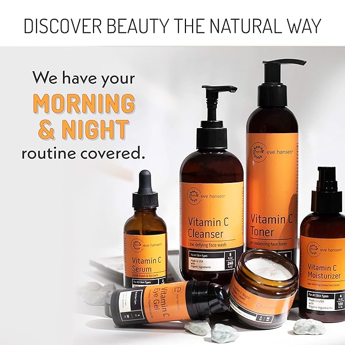 Eve Hansen Vitamin C Facial Serum - 76% Organic Antioxidant Serum for Face with Hyaluronic Acid, Vitamin E, and Aloe Vera - Hydrating and Rejuvenating Skin Care 2 Oz