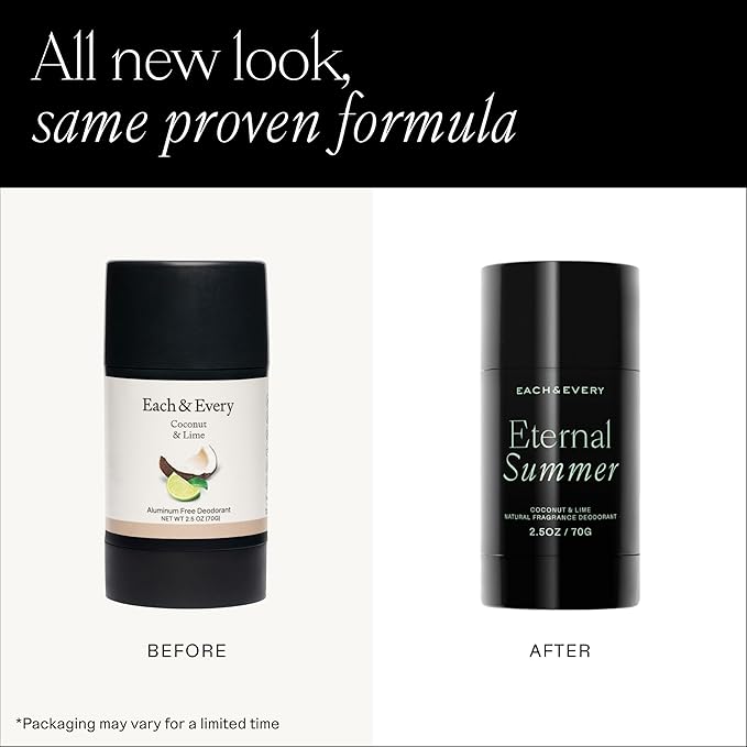 - Eternal Summer - This scent invites you to soak up the sun with notes of luscious coconut and a tropical twist of lime. Meanwhile, plush tapioca starch and conditioning coconut oil give this sensitive skin deodorant a smooth glide.