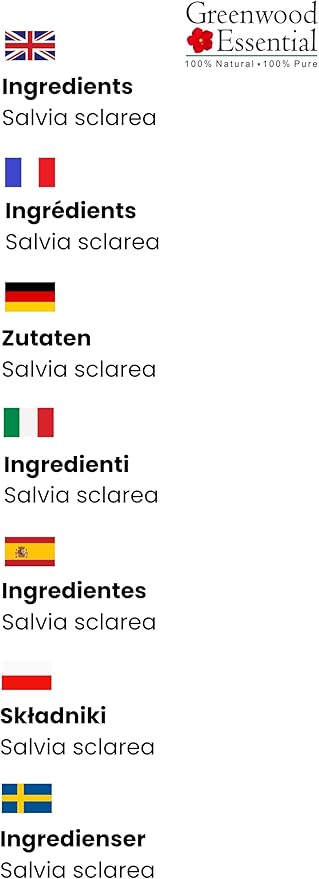 - Quantity - 100ml (3.38 oz) Container Type - High Quality Amber Glass Bottle. Method of Extraction - Steam Distillation Botanical Name - Salvia sclarea, 100% Pure, Natural, Undiluted, Premium, Therapeutic Grade Essential Oil Vegan, Cruelty Free, Not Tested on Animals, Alcohol Free, Solvent Free.