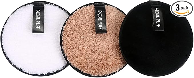 Vtrem 3 Colors Reusable Makeup Remover Pads Washable Double-Side Face Eye Lip Remover Pads Multi-Function Microfiber Soft Facial Cleaning Puffs Towels for All Skin, Black/White/Coffee