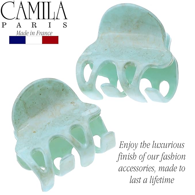 Camila Paris CP3088 French Hair Clip for Women, Set of 2 Small Mint Girls Hair Claw Clips Fashion Durable Hair Accessories for Women, Luxury Ladies Strong Hold No Slip Grip Clamp, Made in France