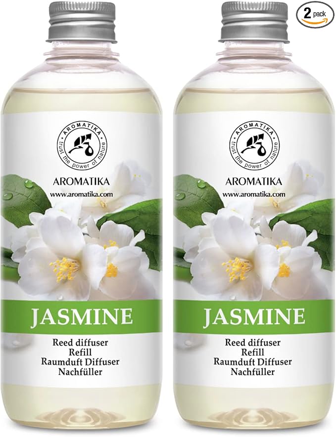 - Reed Diffuser Refill contains1L / 2x500ml Jasmine aroma, dispersing long-lasting fragrance into the air 24/7. Just pour the refill into a clean diffuser bottle, insert sticks & enjoy.