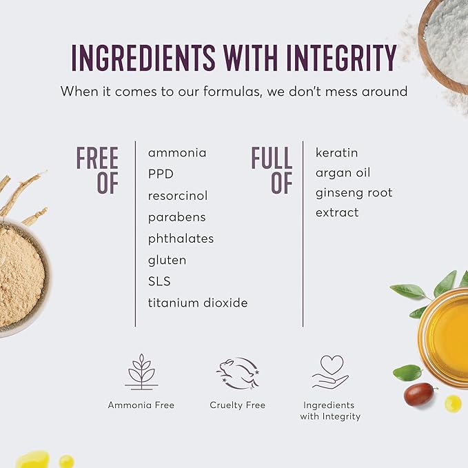 - NOURISHING FORMULA THAT LOVES YOUR HAIR BACK: Infused with keratin, argan oil, and ginseng root extract, this cream-based color is shown in an independent study to improve the condition of your hair. Dermatologist tested, ammonia-free, and gentle on all hair types.