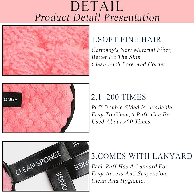 - 【Soft and Friendly】The reusable makeup remover pads are made of high-quality microfiber and built-in sponge, skin-friendly, hypoallergenic and suitable for all skin types. Perfect for getting deep into the pores and successfully removing all make-up without any discomfort. It can be used as eye makeup remover, facial makeup remover, eye shadow, mascara, lipstick, etc.
