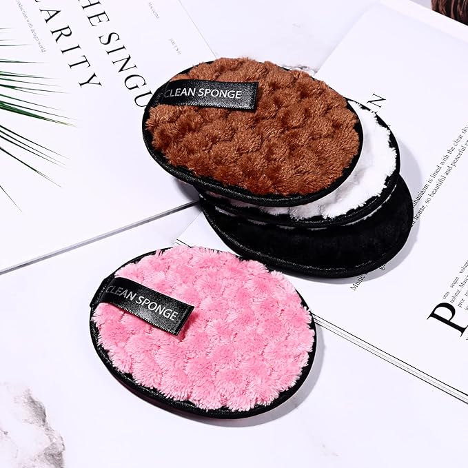 - 【4PCS with 4 Colors Makeup Removing Pads】White/Pink makeup remover pads, suitable for light makeup such as sunscreen, sunscreen, bb cream; Brown makeup remover pads, can easily remove daily makeup, including waterproof mascara; Black pads are perfect for heavy makeup, such as Smokey look.