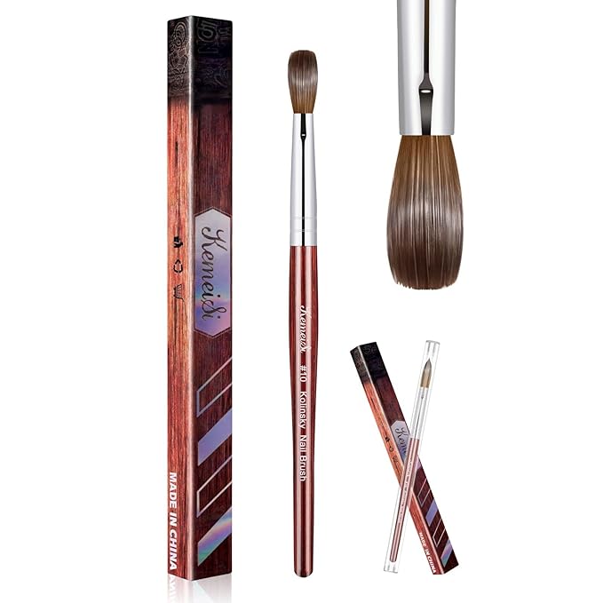 Acrylic Nail Brush Size 10,KEMEISI 100% Pure Kolinsky Nail Art Brushes Wood Handle Oval Shaped Acrylic Powder Nail Design Tools for Professional Manicure DIY Home Salon (Red)