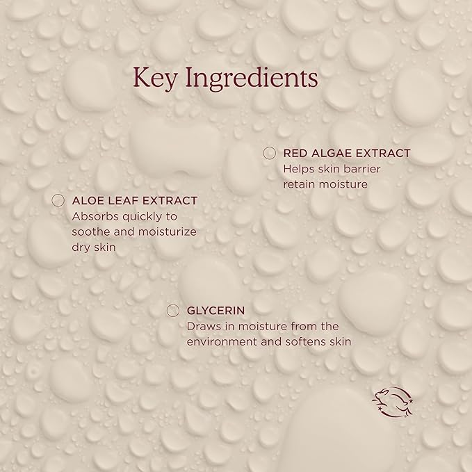 - HYDRATING INGREDIENTS: This skincare is formulated with a cocktail of powerful moisturizers that instantly absorb into dry, thirsty skin. These include Aloe Leaf Extract, Red Algae Extract, Glycerin and low-molecular weight Hyaluronic Acid.