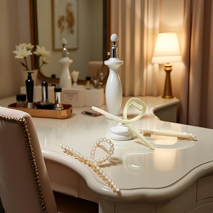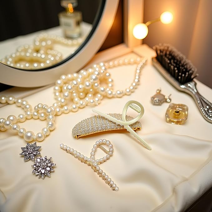 - ✨Versatile Hair Accessory: 2 pack of large metal hair claws with pearls for thick or curly hair, perfect for creating effortless half-up hairstyles.