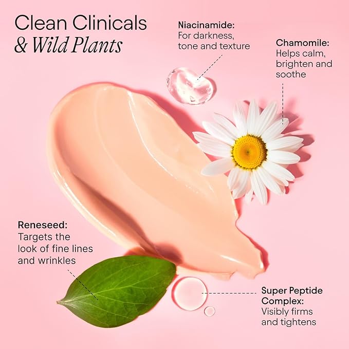 - KEY INGREDIENTS: Super Peptide Complex: Visibly firms and tightens. Niacinamide: For darkness, tone and texture. Reneseed (Retinol Alternative): Targets the look of fine lines and wrinkles. Chamomile: Helps calm, brighten and soothe.
