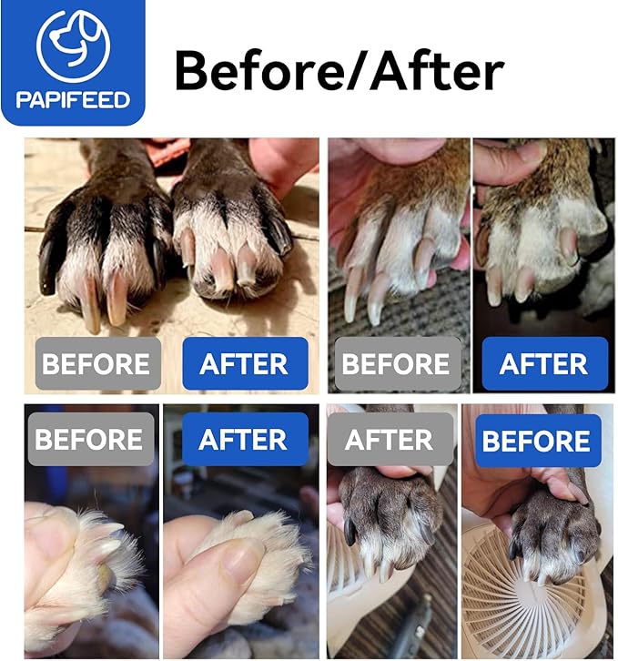 - 🐾【PAPIFEED Low Decibel Quiet & Noise Reduction】: The noise generated by the professional dog nail grinder is less than 50 db, and it adopts shock-absorbing noise reduction and ultra-low quiet design, so the dog will not be scared or anxious when trimming the nails, and the grinding of nails is quiet and efficient