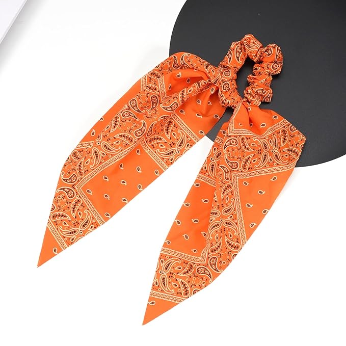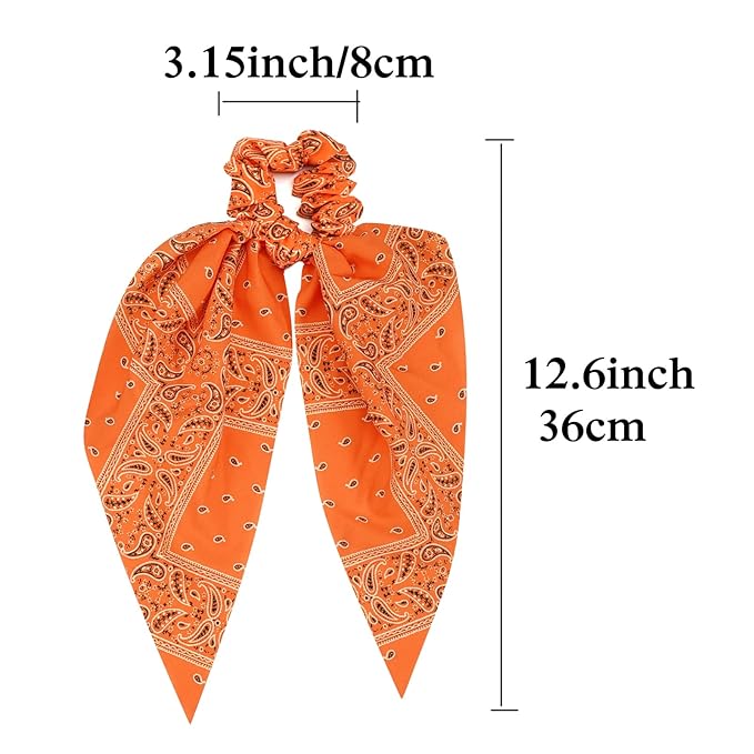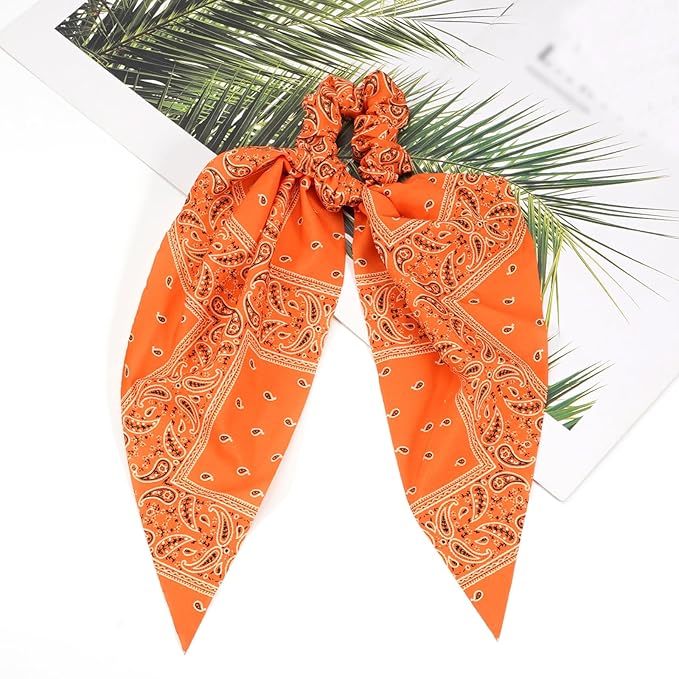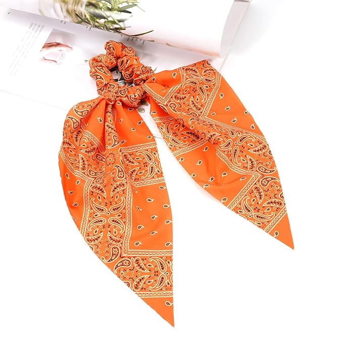 - ★ Reliable Material★ The cute oange bandana bow hair ties for women girls are made of stretchy fabric, designed with rubber band and with good texture, durable and elasticity , soft and comfortable to touch, can fix your hair in place and not easy to slip.