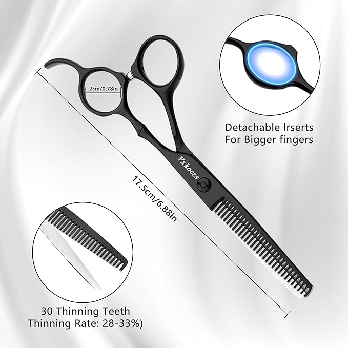- VERSATILE FOR ALL HAIR TYPES & STYLES – Whether you’re cutting thick, fine, curly, or straight hair, this set delivers versatility and precision for various hair textures. The thinning shears are perfect for layering and creating textured styles.