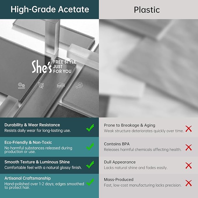 - 【High-Quality Material】Made of acetate resin, this hair barrette is not only durable but also has a smooth and lustrous finish. The material is carefully selected to provide a premium feel and long-lasting use.