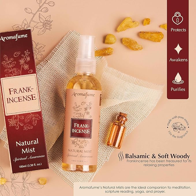 Frankincense Natural Resin Mist Spray by Aromafume | 100 ml / 3.3oz | Ideal for spirituality, prayer & rituals | Made with Frankincense Resin from Somalia | Non-alcoholic & non-toxic