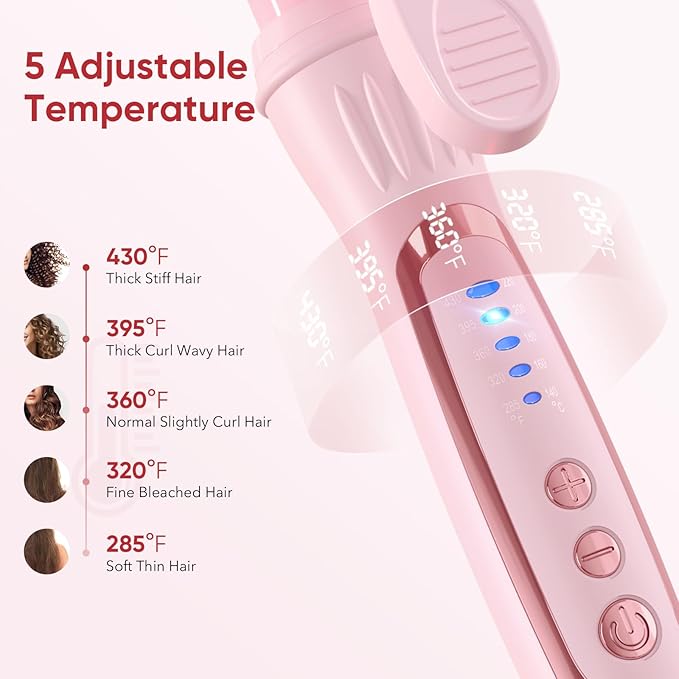 1.50 Inch Curling Iron, 5 Temperature Settings, Professional Spring Hair Iron for All Hair Types, Max 430℉ with Heat Resistant Mat (1 1/2 Inch Pink)