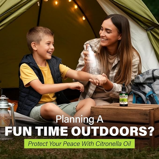 - Use citronella essential oil during camping trips or backyard gatherings. This citronella yard spray keeps you safe, feeling fresh, and offers a naturally invigorating and uplifting experience while enjoying your time in nature