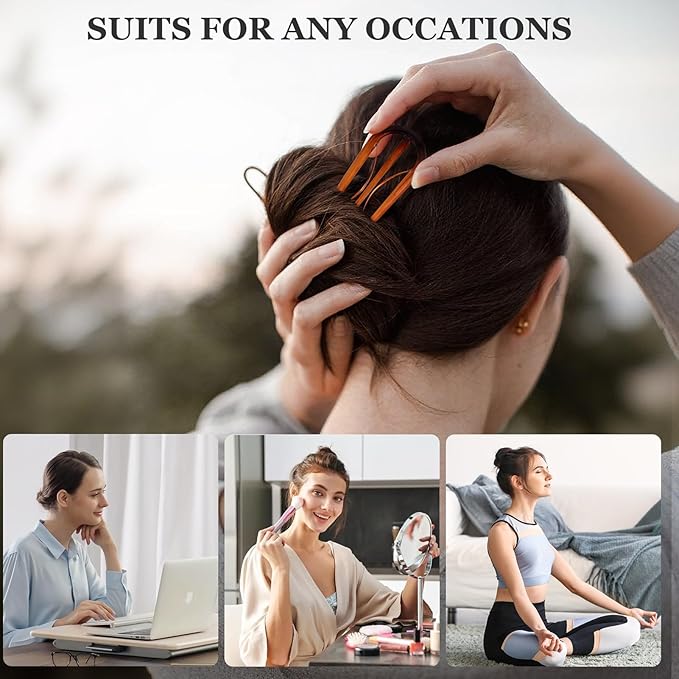 Sunolga 6PCS French Hair Pins for Women, French Pins Hair, Large Hair Styling Pins for Thin Thick Hair, Unique 3 Internal Teeth Hair Sticks Hairpin(Amber)
