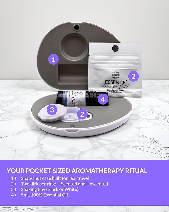 Essence Pearl Travel Case - Wearable Aromatherapy Kit with Nasal Diffuser Rings, Soaking Bay, and 5mL Essential Oil – Portable Wellness Gift Set for On?The?Go Self Care