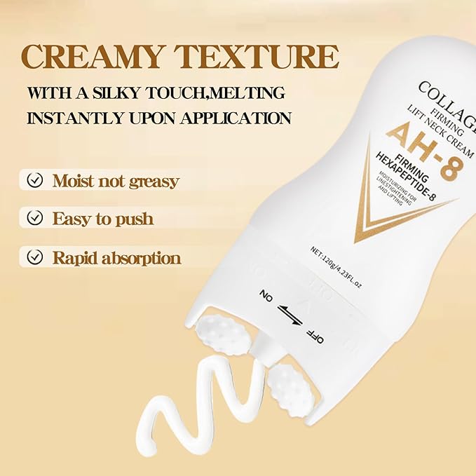 - NECK FIRMING AND TIGHTENING: The dual rollerball design of the AH-8 neck firming cream effectively massages the neck area, helping the cream penetrate deeply into the skin and restore firmness and vitality.