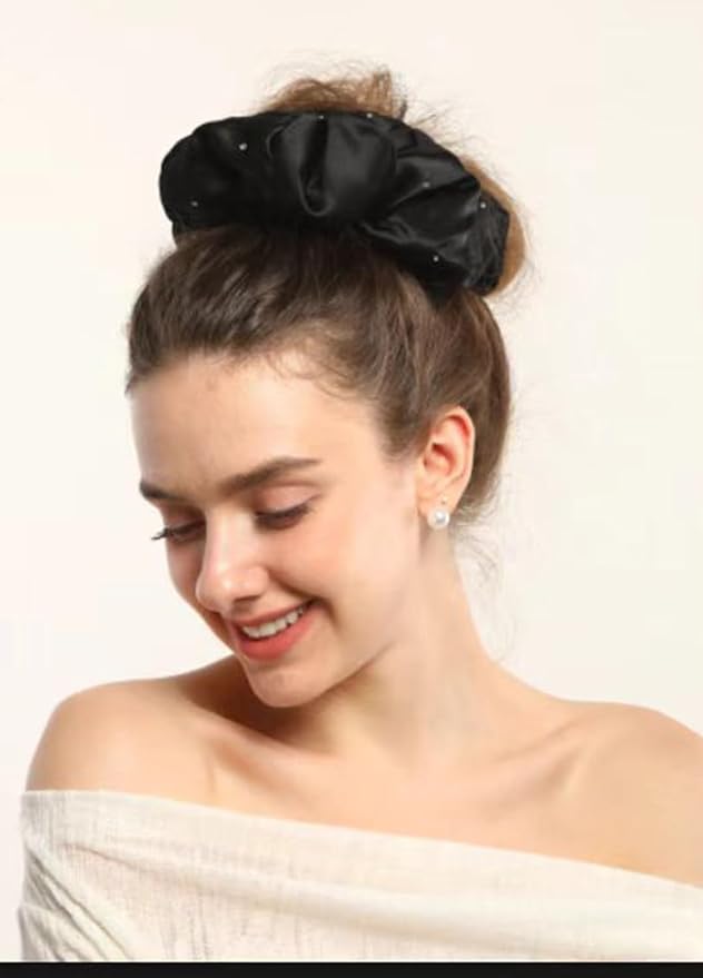 - Indulge in the ultimate haircare luxury with our oversized silk scrunchies crafted from premium 6A Grade 22 momme mulberry silk—the highest quality available. This ultra-smooth fabric glides over strands without friction, preventing breakage, reducing frizz, and preserving natural curl definition. Available in sophisticated hues—emerald green, classic black, soft pink, radiant champagne—and a dazzling rhinestone-accented design, these scrunchies blend opulence with function, making them ideal for daily wear or overnight protection.