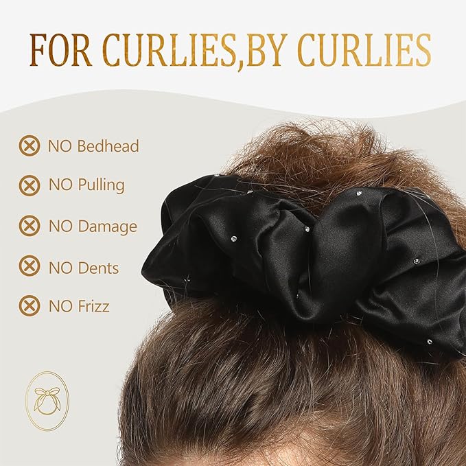 - Designed with textured and curly hair in mind, these jumbo silk scrunchies offer gentle support without crushing or flattening your curls. Whether you're styling a voluminous wash-and-go, securing a high puff, or protecting twist-outs at night, the generous size and soft grip maintain your hairstyle’s integrity. The result? Defined, bouncy curls that stay fresh from morning till midnight—perfect for work, workouts, weekend lounging, or bedtime routines.