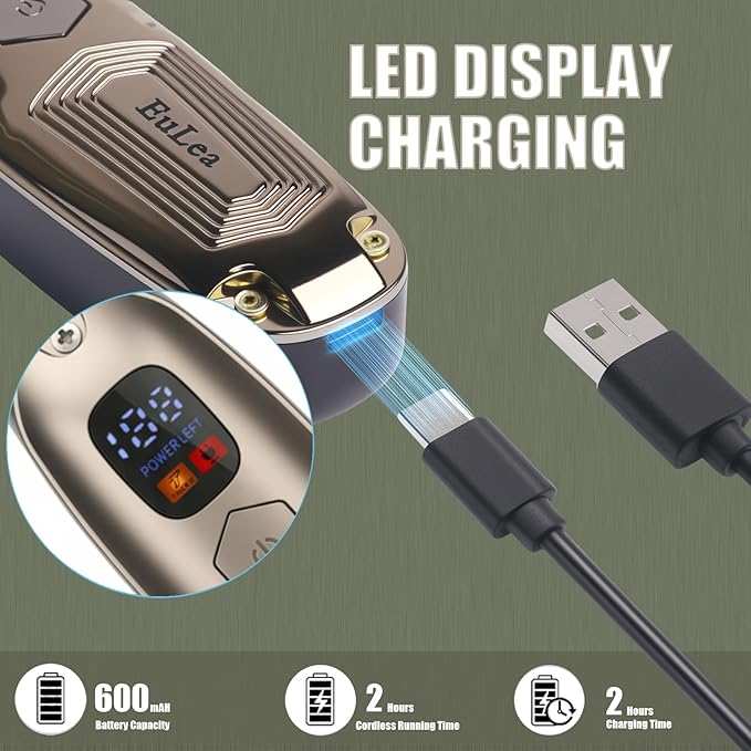 - 【Professional Precision & Versatile Attachments】 Achieve salon-quality results at home! Featuring 2 adjustable speeds for customized control and a clear LED display to monitor battery life. The kit includes essential attachments: 3 guide combs (1mm, 2mm, 3mm), a beard comb, hair clips (2x), and a cape – making it a true multi-use hair clipper and beard trimmer for all your styling needs.