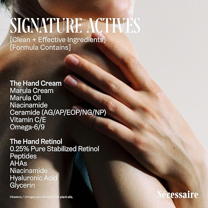 - THE HAND RETINOL: A repair serum-in-balm hybrid formulated with 0.25% pure encapsulated retinol, glycolic acid and mandelic acid to help minimize the appearance of lines, wrinkles and spots.