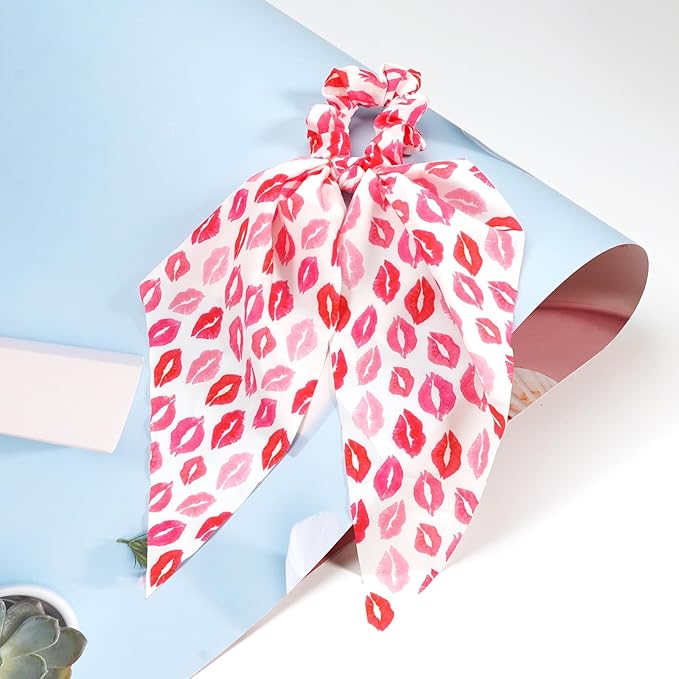 Valentine's Day Hair Ties Pink Lip Hair Scrunchies for Women Teen Girls Elastic Love Hair Tie Ribbon Valentine's Day Hair Bows Hair Accessories Gifts